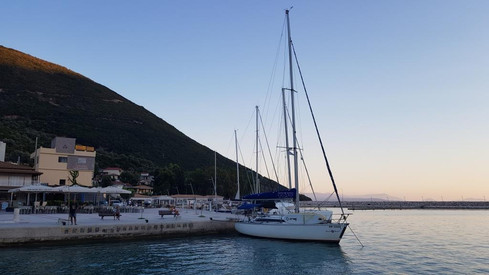 Odločila sva se da bova plula ponoči, dvignila jadra in odplula proti otoku Lefkada, kjer bova skozi severni del otoka zjutraj prečkala preko premikajočega mosta in kanala na drugo stran otoka. Preko spletnih strani sem se pozanimal glede odpiralnega časa mostu in posebnosti plutja skozi kanal. Kanal je dolg približno 3,5 NM ali dobrih 6 km in je po sredini poglobljen, globok pa nekje med 4 in 6m. Skozi celotni kanal vodijo boje, ki označujejo varno pot. Sredi kanala pa se razprostira še velika marina Lefkada. Kanal se odpre vsako jutro ob 8. uri do 22. ure zvečer, na vsako uro pa je možen prehod. Lefkada je lep visok, poraščen otok z lepimi zalivi in varnimi zavetji. Obiskala sva celotno vzhodno obalo in na koncu prenočila v kraju Vasiliki, kjer je ob vetru 30 vozlov, mrgolelo surfarjev. Takoj zjutraj sva se odpravila še na zahodno stran otoka, kjer sva obiskala dolge peščene plaže z turkizno modro barvo morja. Ker je ta stran obale obrnjena na odprto morje, v primeru močnejšega vetra in velikih valov ni možno ali pa ni priporočljivo sidranje in kopanje, saj celotna obala nima enega varnega zavetja.