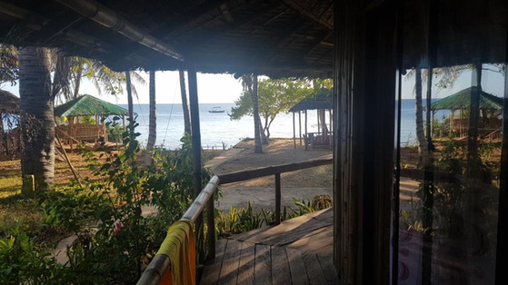 Prispela sva okoli 11.30 ure in na terminalu naju je že čakal moj prijatelj Božidar. Prtljago smo natovorili v njegov pol tovornjak, in zapeljal naju je do najinega prebivališča v katerem bova preživela nekaj dni. Najela sva sobo s kopalnico tik ob obali, v sobi naju je čakala postelja in miza, en del pa je bil ograjen z bambusovimi debli za katerimi se je skrival umivalnik in wc školjka. Takoj sva se podala raziskati bližnjo plažo in se namočila v toplo morje. Morje na Filipinih se giblje nekje nad 26 stopinjami pa vse tam do 30 stopinjami.